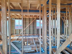 Каркас собран на гвоздях, с укосинами и всеми необходимыми конструктивными элементами.