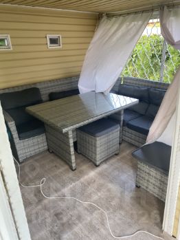 Продается уютный и комфортный каркасно-щитовой домик, на первом этаже гостиная, 3 спальни, туалет, душ, баня, кладовая, на втором мансардном этаже еще одна комната, во всем доме пластиковые окна, железная дверь, водонагреватель, спутниковая антенна. Дом обставлен всей необходимой мебелью в хорошем состоянии. Есть пристроенная летняя кухня с холодильником, бетонная площадка под автомобиль, установлен новый забор с воротами с лицевой стороны. Газовая труба у соседнего участка. Индивидуальный прямой договор электроснабжения с ПАО "Самараэнерго". На участке расположены бетонная площадка под бассейн, навес для мангала, дровница, хозблок, уличный туалет, уличный душ. Участок три года назад полностью обновлен, был снят верхний слой земли, завезен новый, засажен газон, убраны старые и посажены новые молодые деревья яблони, груши, абрикоса, сливы, есть взрослое дерево черешни (крупная и сладкая), малина, три вертикальные грядки многолетней клубники. На участке растет много туй, можжевельников, цветов, 8 сортов вкусного культурного винограда, много кустов роз и пионов. Есть небольшая теплица, перекрыта новым поликарбонатом. Дружелюбные соседи. Облагораживали и оформляли для себя, продаем в связи с переездом. Цена 2,2 млн.рублей. Еще за 0,1 тыс рублей можем оставить набор плетенной летней мебели, каркасный бассейн, качели и шезлонги.