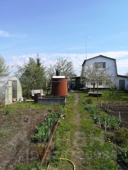 Участок продается вместе с расположенными на нём постройками: баней, гаражом, сараями и др. Баня кирпичная, с печным отоплением. Внутренняя отделка липой. Гараж под одну легковую машину. Также на участке имеется: летняя кухня (навес), теплица, летний душ, рассадник, металлическая ёмкость для воды (5 кубов), туалет.