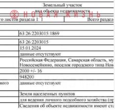 Кадастровый номер 63:26:2203015:1869