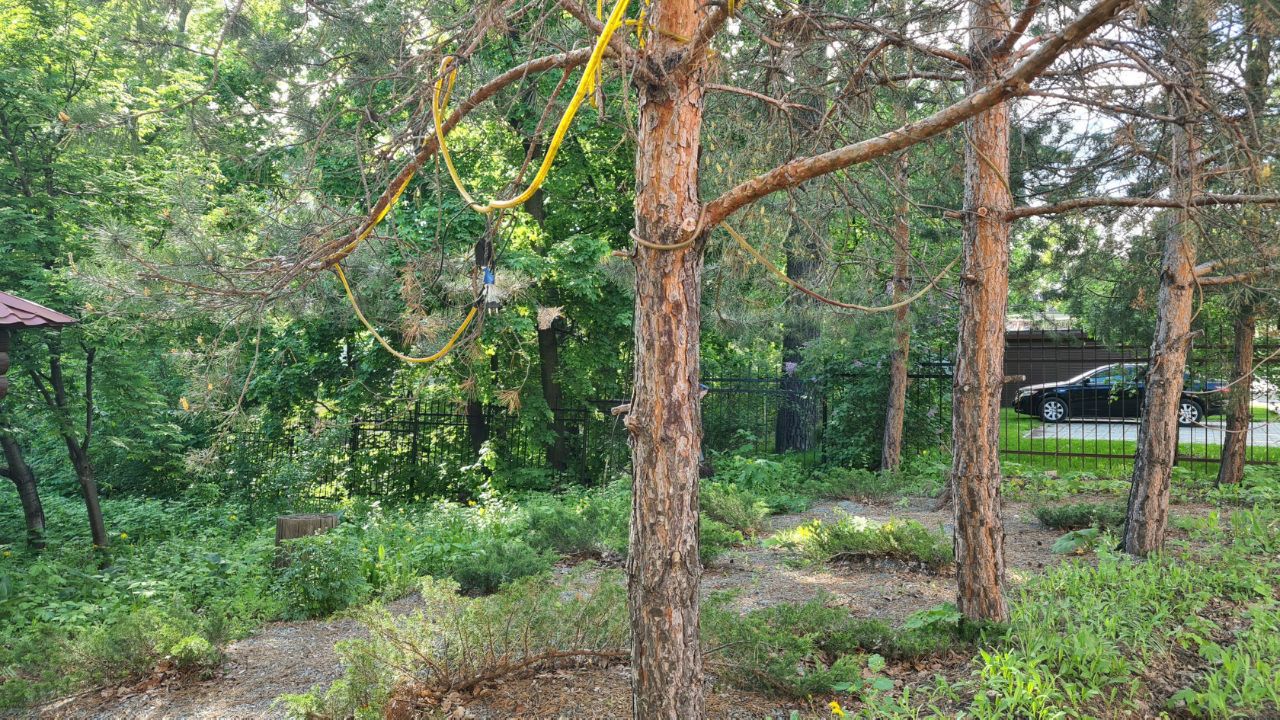 На участке растут дубы, клены, ивы.