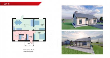 1-этажный Дом 81 м2 в черновой отделке на земельном участке 6 соток.
