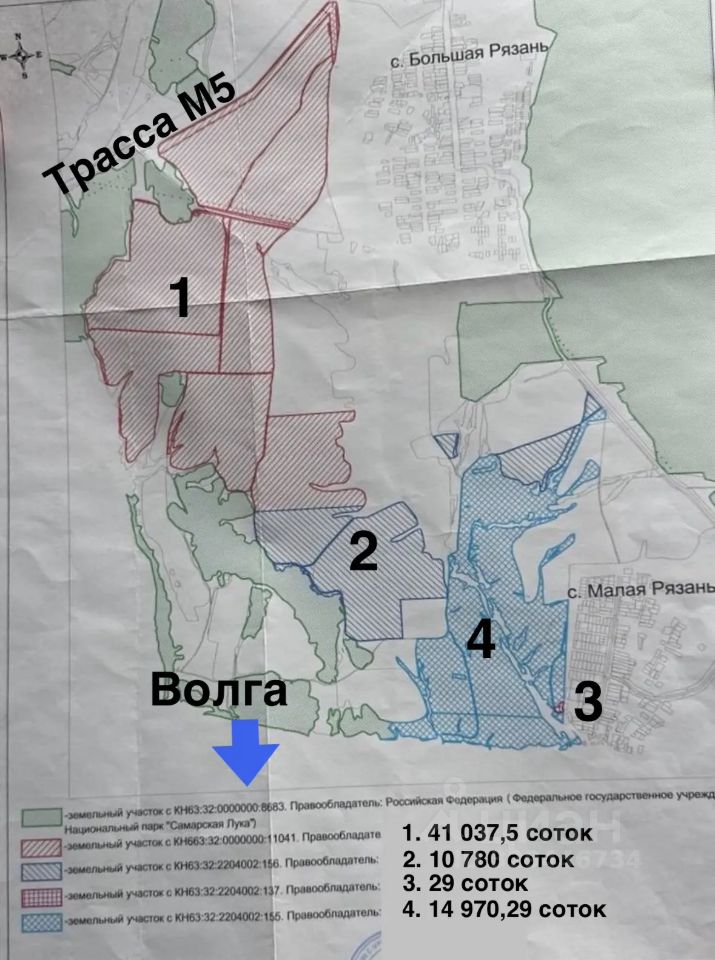 В продаже земля с/х назначения, общей площадью 668 га, находящаяся в юго-западной части Самарской Луки, близ сел Большая и Малая Рязань.