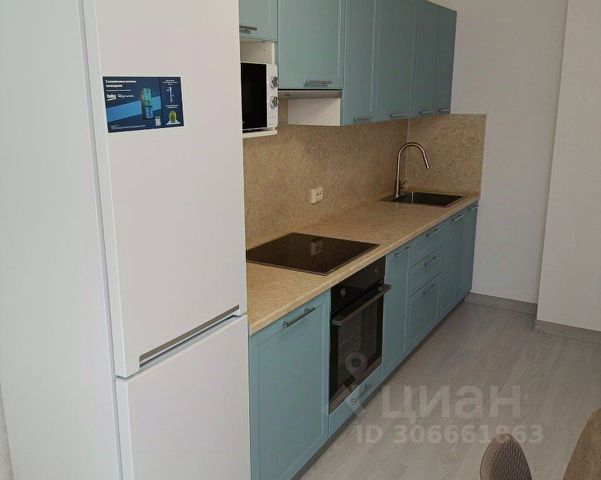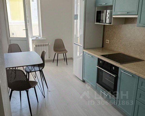 Кухня полностью оснащена техникой: холодильник, плита, духовой шкаф, микроволновка, чайник.