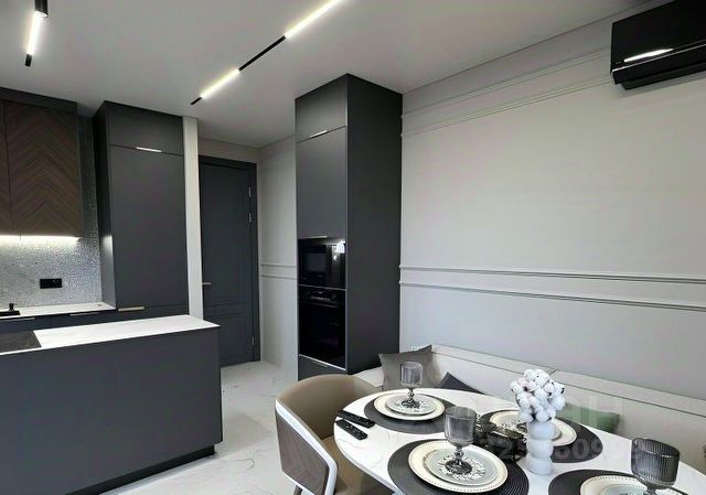 Везде стоит дорогая мебель, премиальное освещение. Двор без машин, детская площадка, подземный паркинг, закрытая территория, видеонаблюдение, ландшафтный дизайн.