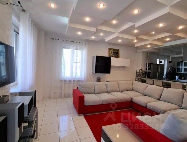 В гостиной большой раскладывающийся диван, функциональный гарнитур, установлен кондиционер для создания прохладного климата в летнюю жару. Из комнаты выход на просторную лоджию с теплыми полами и проведенным электричеством. Все окна распашные - можно любоваться прекрасным видом на окрестности.