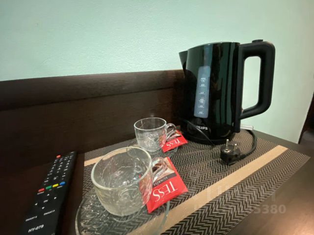В номере: кабельное телевидение, Wi-Fi, телефон, будильник, кондиционер, электронные замки, фен, светильник, весы, двуспальная кровать, вешалки, багажная тумба, шкаф для одежды,чайный набор.