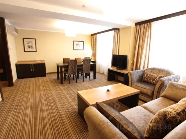 Двухкомнатный номер высшей категории с просторной гостиной, уютной спальней, с большой двуспальной кроватью (1800*2000). В номере имеется два санузла. В ванной комнате угловая ванна, биде. Оборудован: 2 кондиционерами, 2 телевизорами, сейфом, феном, мини-баром.