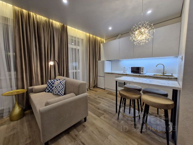 В квартире оборудованы: кухня, спальня, ванная комната, душ, вместительная гардеробная, водоснабжение (горячее, холодное), освещение.