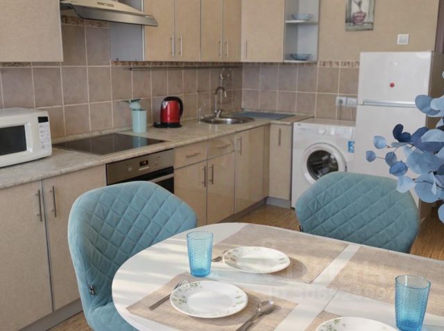Техника: стиральная машина, газовая плита, большой холодильник с морозильной камерой, фен для волос, микроволновка, чайник, большой тв, телевидение, высокоскоростной wi-fi, кондиционер,утюг, сушилка для белья, вся необходимая посуда для приготовления и приема пищи.