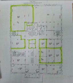 Идет ремонт. Пол плитка, потолок навесной амстронг, стены покрашенные. Санузел, четыре кабинета с мокрой точкой. Всего шесть кабинетов и вестибюль. Есть возможность согласовать цвета отделки стен