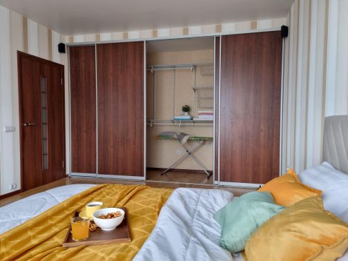 В квартире есть: отдельный вход, шикарный балкон,тёплый пол при входе, тапочки одноразовые, столик для балкона, кондиционер,одна-2х спальная кровать,чистое бельё и полотенца, 2 тумбочки прикроватные,шкаф ,сейф,санузел с тёплым полом ,гигиенический душ +средства гигиены, фен , кухня, стиральная машина+ средства для стирки, плита электрическая 2 конфорки, вытяжка над плитой, тостер, чайник, кофемашина,чай-2 вида, кофе-3 вида, сахар, сладости, холодильник, стол круглый, 2 стула, камин,телевизор, бесплатный интернет.